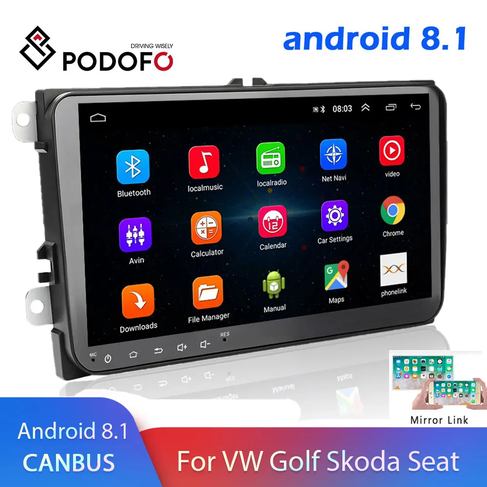 Podofo Android 8.1 2 Din Car radio Multimedia Player GPS Stereo For Volkswagen Skoda Seat Octavia g