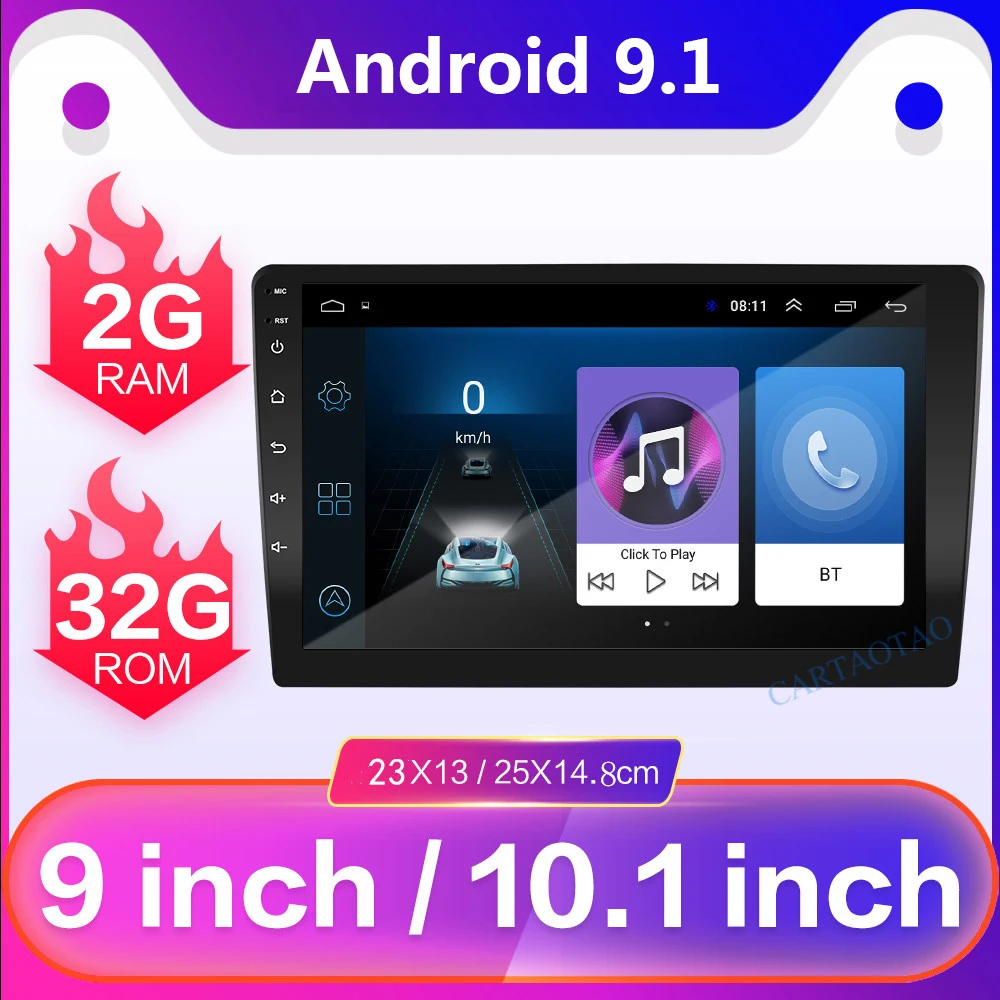 TOP 2G+32G Android 9.1 Car Radio 9" 10.1" Universal 2 Din Touch Screen Car Multimedia Player Audio GPS